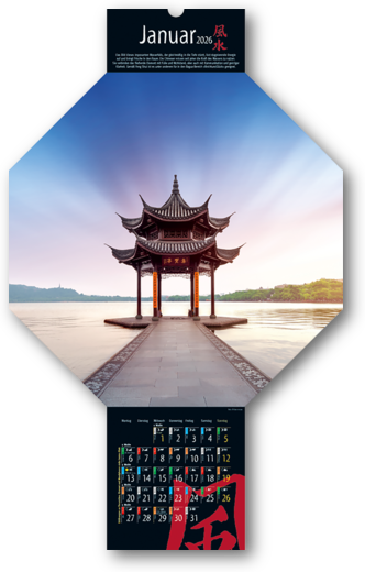 Von der Schönheit des Augenblicks erzählen die Bilder des Feng-Shui-Kalenders. Ob grandiose Landschaften, stimmungsvolle Lichteffekte oder zarte Blüten – die Monatsmotive schenken uns ein Gefühl von Harmonie und Schönheit. Mit chinesischen Tierzeichen und Elementen für jeden Tag. Erläuterungen hierzu sind auf einem Extrablatt. Mit westlichen Mondphasen und wertvollen Feng-Shui-Tipps.