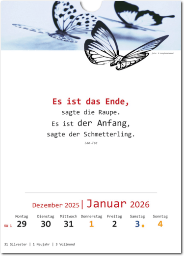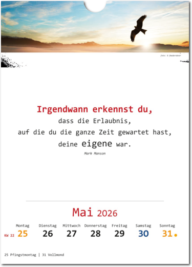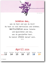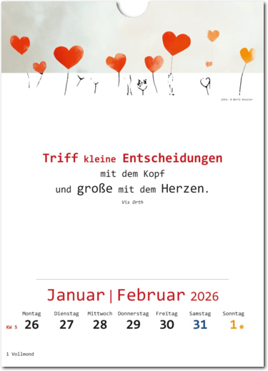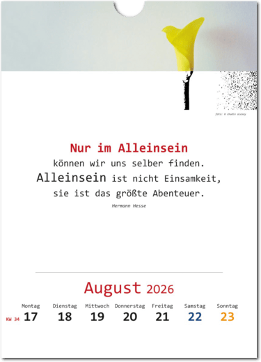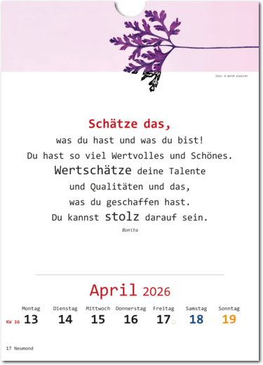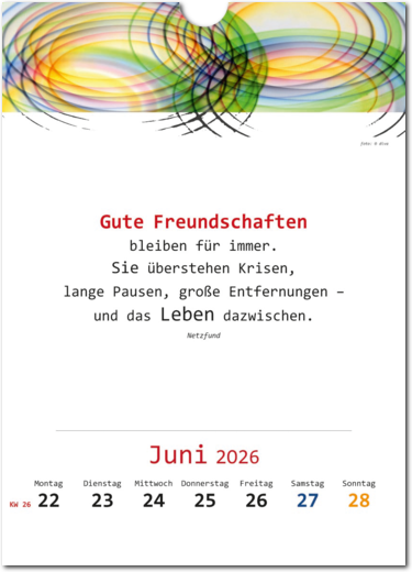 • Wandkalender für 52 Wochen mit Text und Bildern