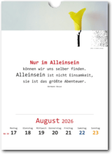 Sei gut zu dir selbst, nimm dich wichtig und sorge für dich. Mit dieser Botschaft inspiriert uns der Ich-Kalender jede Woche aufs Neue und führt uns mal heiter, mal nachdenklich durchs Jahr. Lebensnahe Zitate von Dichtern und Denkern, Sinnsuchern und Sinnfindern, von Heldinnen und Helden des Alltags laden zum Schmunzeln und Sinnieren ein und geben positive Impulse. Die ansprechenden Bilder und die attraktive Gestaltung machen den kleinen Kalender zum attraktiven Hingucker und zu einem wunderbaren Geschenk für sich selbst und für liebe Menschen.